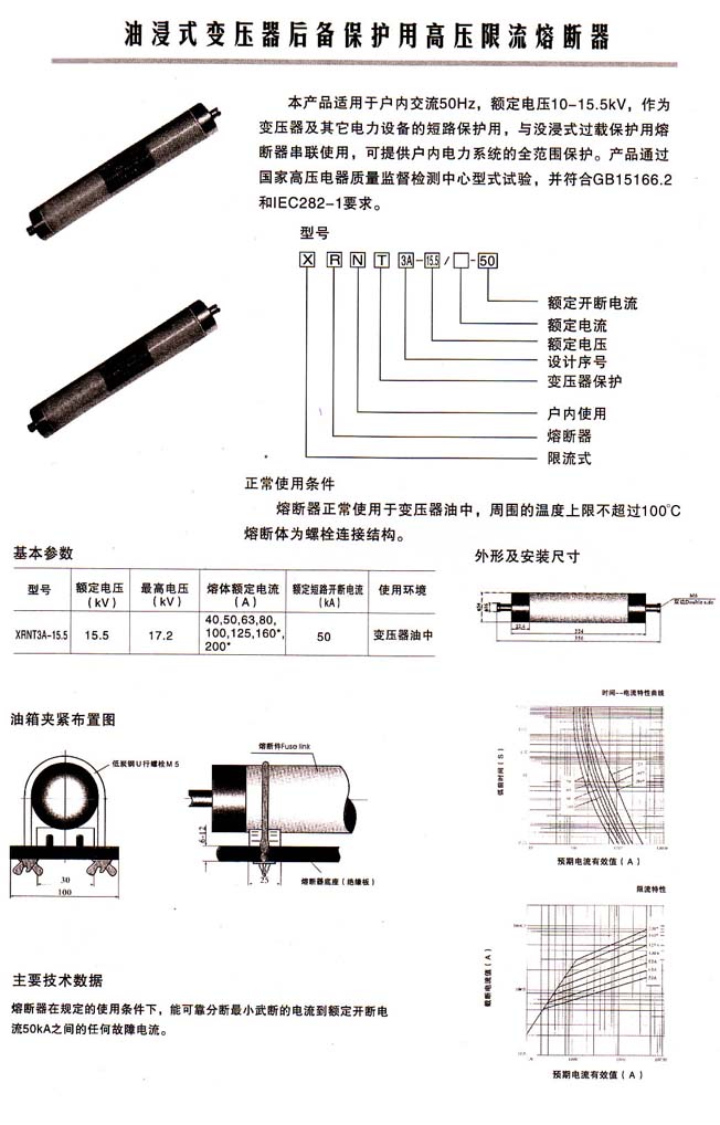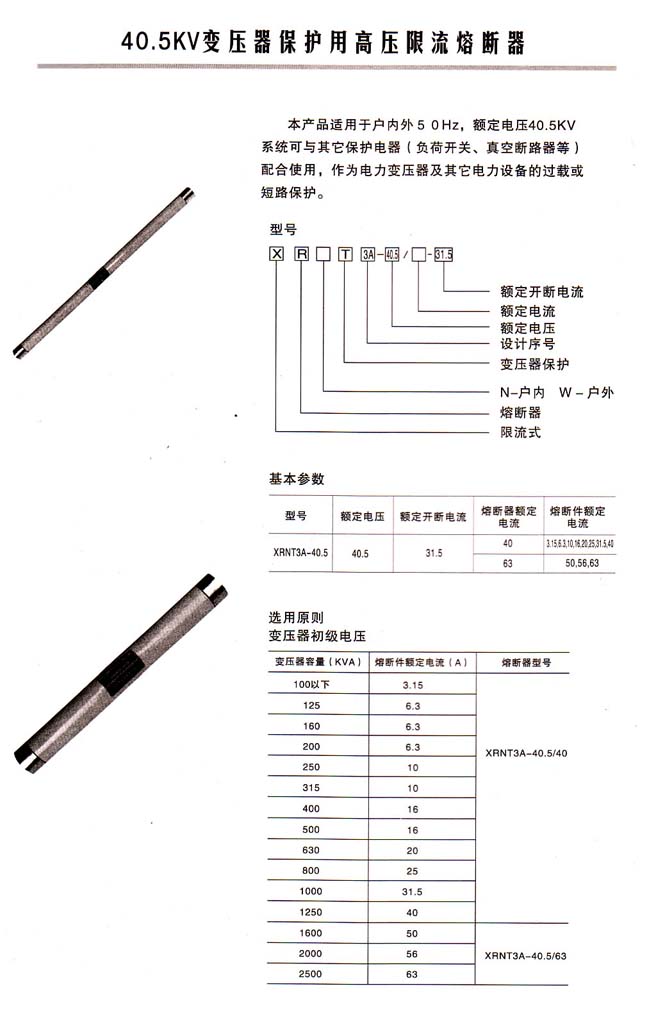 限流式熔管,可以安裝在任何型號(hào)的跌落上,F(xiàn)在為了將線路商議安裝的跌落熔斷器直接換成限流熔管,所以,首先生產(chǎn)的型號(hào)選擇了RM11型,但由于是限流熔管,所以叫做XRW11型。